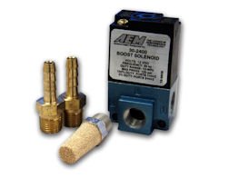 The model 30-2400 Boost Control Solenoid specially modified for use as a boost control solenoid in high boost automotive systems. The kit includes all the necessary fittings to plumb your wastegate for either an internal or external wastegate.The 30-2400 Kit Contains: 1x Fast Response Solenoid 1x 1/8 NPT Sintered Muffler 2x 1/8 NPT to -4AN Male Adapters 2x 1/8 NPT to 3/16 Hose Barb Adapters