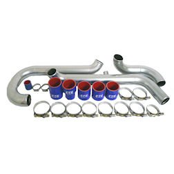 (T3/T4 Pipe (Powder Coated Gloss Black)) Built for the (95-99) Mitsubishi 2G Eclipse-Talon... The ETS Intercooler Piping Kit is designed to eliminate many of the unnecessary bends that snake around the stock engine bay. Once the air passes through the intercooler, their intercooler piping takes a short direct path around the core support, over the transmission and straight up to the throttle body. This unique routing is over two feet shorter than the stock (if applicable) routing which results in greatly improved spool up.