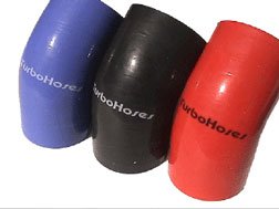 (3 1/2" ID (BLUE)) Our 45 degree bends are the tightest radius possible on the market today. These are often necessary to get out of those tight spaces where larger radius hoses are useless. Turbohoses is proud to be the only provider for tight radius bends. Made of 2-Ply fiberglass reinforced silicone, 110 wall thickness. Operating temperatures of -65f to 600f. We stock 2"ID to 4"ID. Colors available: BLUE, RED and BLACK.